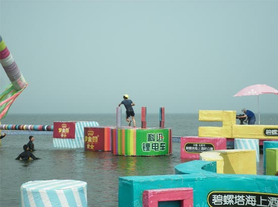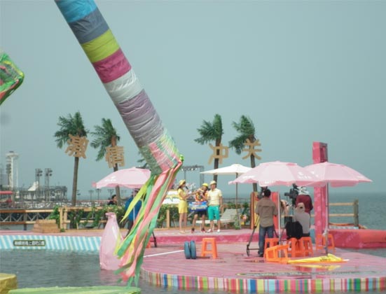 ? ? ? ?頂大方便面皮攜手河北經(jīng)濟(jì)生活頻道激情大沖關(guān)節(jié)目,共走青春、活力、動(dòng)感、時(shí)尚的品牌之路。2012年7月11日河北經(jīng)濟(jì)生活頻道激情大沖關(guān)節(jié)目組的工作人員早早就在秦皇島北戴河碧螺塔酒吧公園的錄制場(chǎng)地準(zhǔn)備就緒,我們進(jìn)場(chǎng)的第一眼就看到了場(chǎng)地正對(duì)面及舞臺(tái)地面的“頂大面皮兒”LOGO標(biāo)示。???? 節(jié)目開(kāi)始錄制,選手們來(lái)自各個(gè)城市,在這炎炎的夏日來(lái)到美麗的海濱城市,不親近一下海水怎么行???帶著激情上場(chǎng),帶著微笑落水,帶著頂大面皮兒與朋友分享。也許這樣才是我們的真正的放松,這樣才會(huì)使我們更加年輕,讓我們一同鎖定8月的河北經(jīng)濟(jì)生活頻道的激情大沖關(guān)吧!